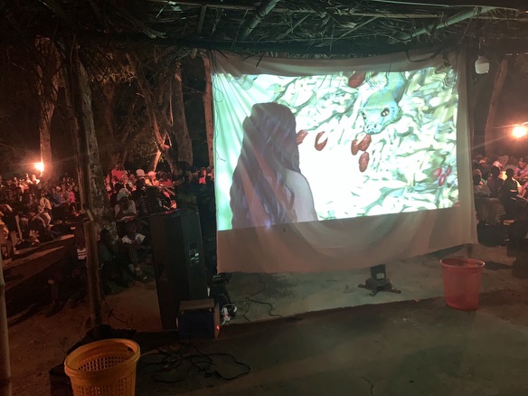 In addition to this, during the New Year’s eve “watchnight” service - held outdoors under towering trees - we showed an abridged (1 hour 40 minutes) version of the 4-hour King of Glory video called “For This Reason: A Christmas Movie for all seasons.” Several hundred people were in attendance. Because it was shown on a white cloth (as vs. a actual screen), the movie could be seen on both sides.